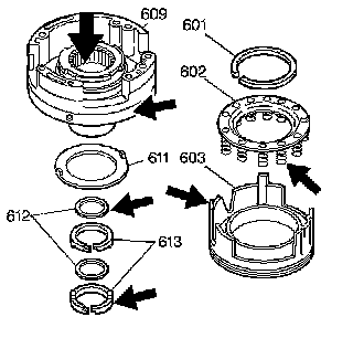 4. Inspect the fourth clutch spring assembly (602) for distorted or missing springs.