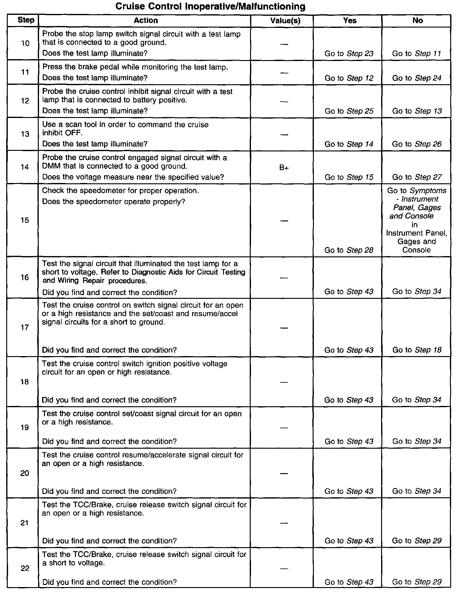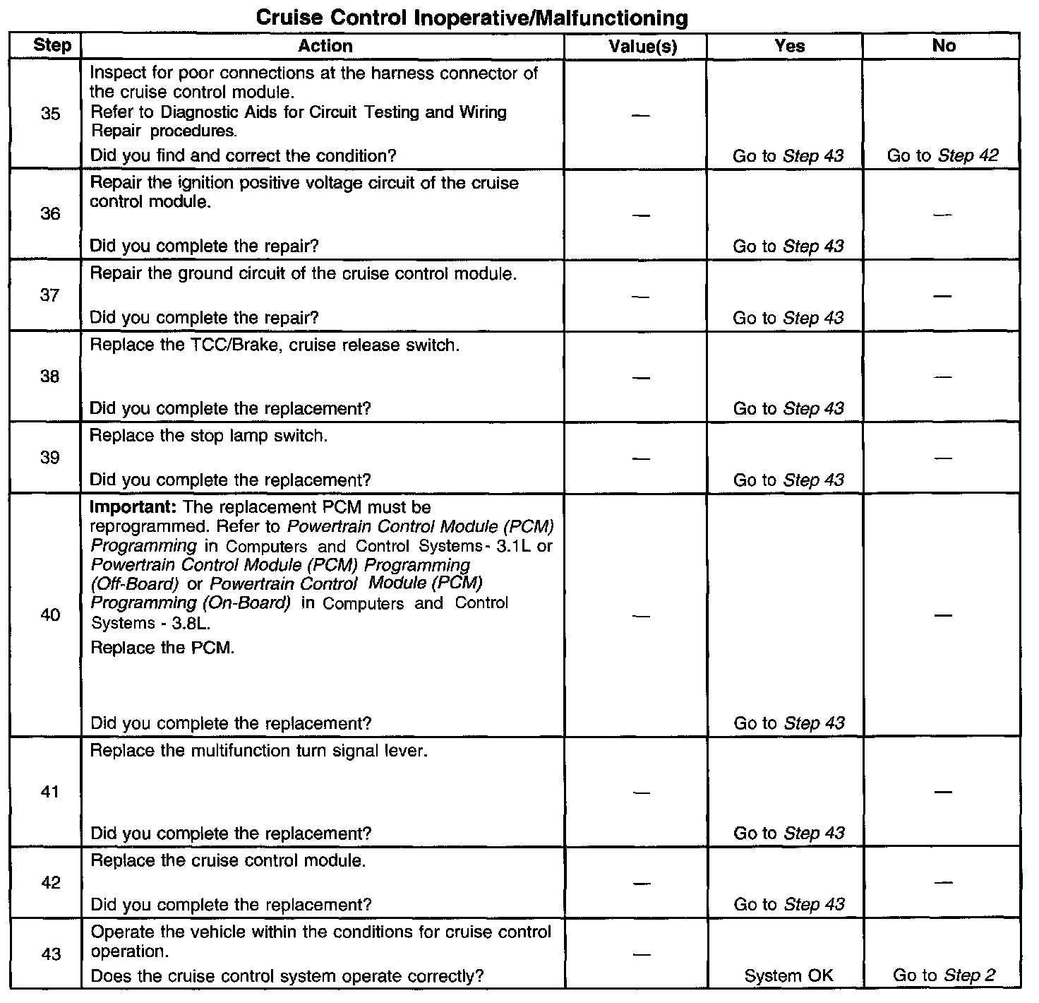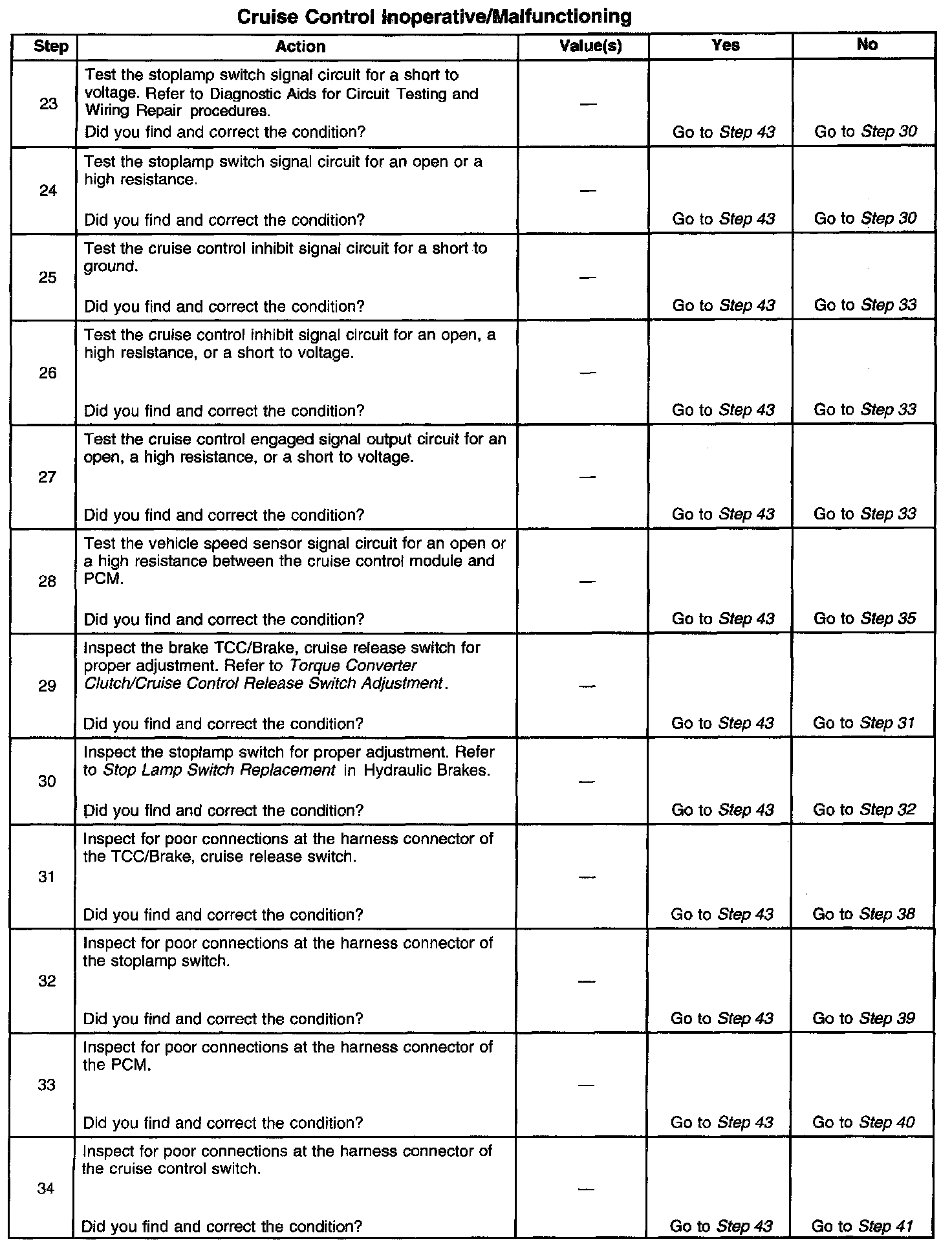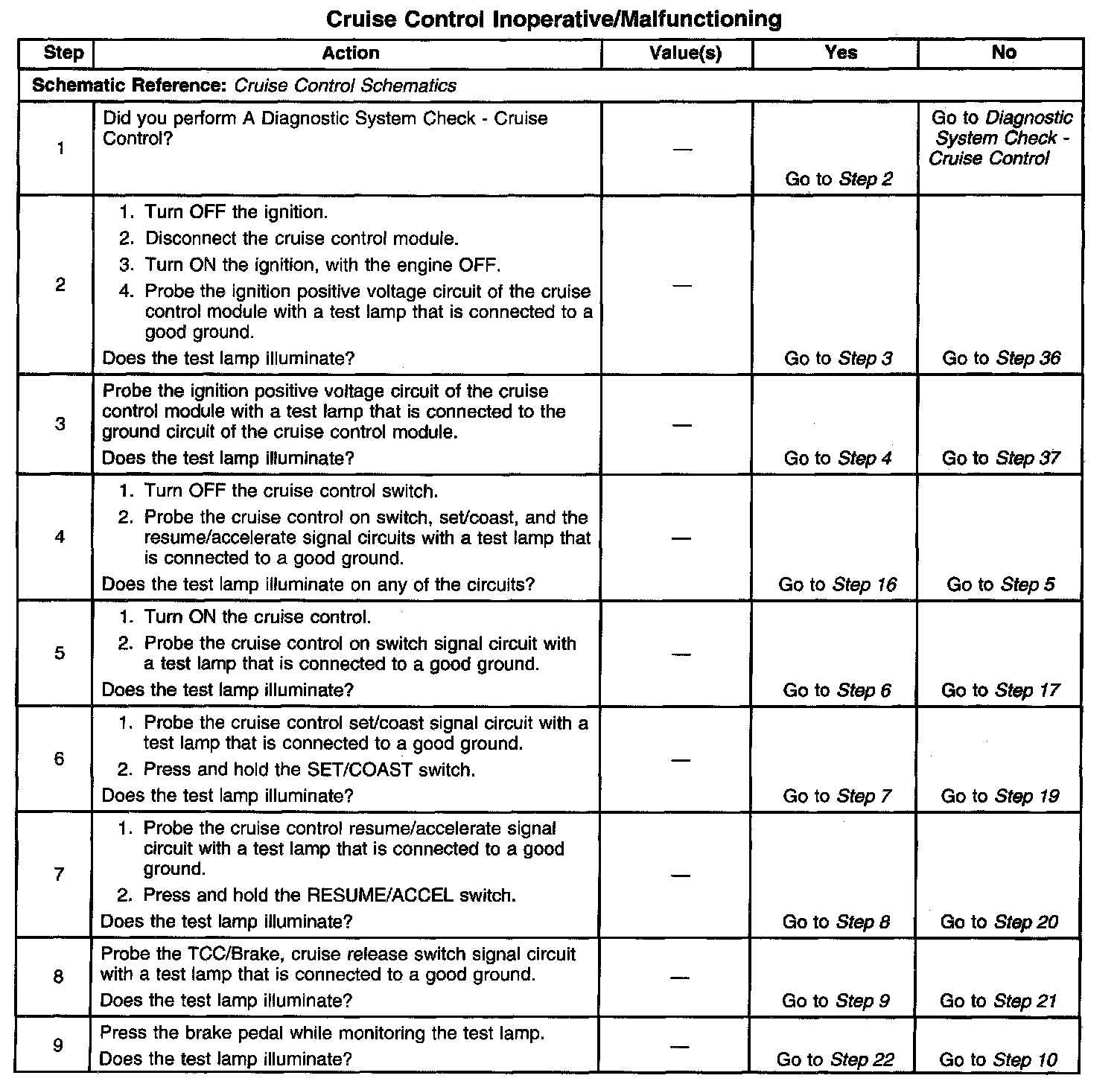 Cruise Control - Inoperative/Malfunctioning