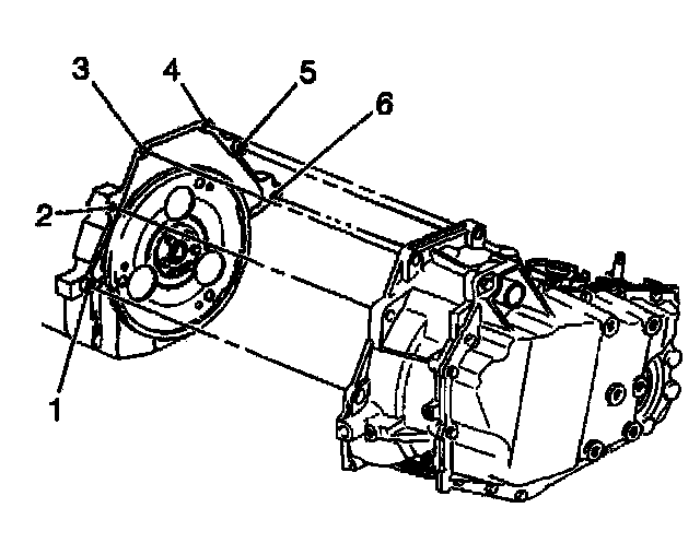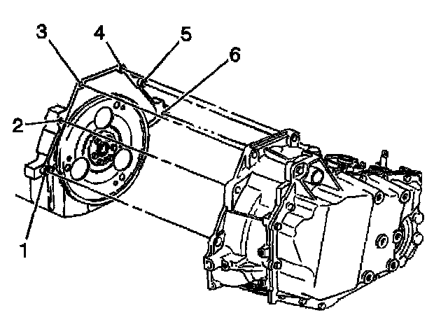 19. Remove the bolt (6) and stud (1) which secure the lower transaxle to the engine.