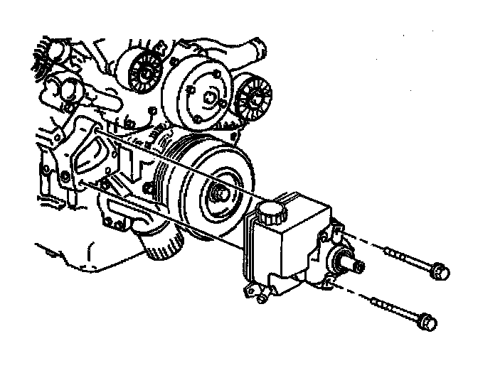 34. Remove the power steering pump bolts and pump from the engine. Lay the power steering pump aside.