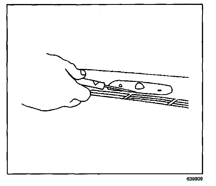 1. Insert a small, plastic flat-bladed tool into the slot on the rear edge of the sensor bezel and release the bezel retainer from the I/P upper trim panel.