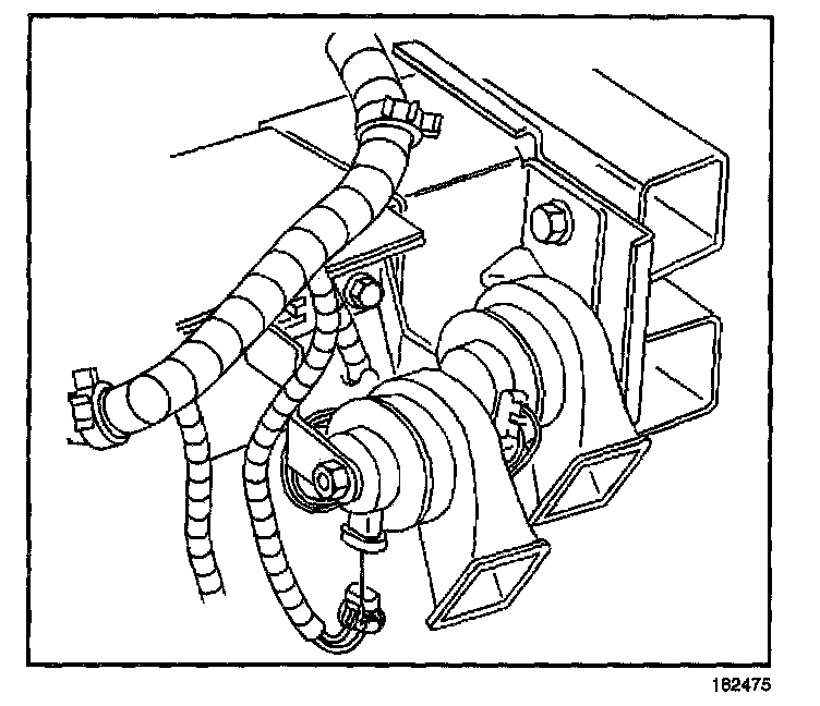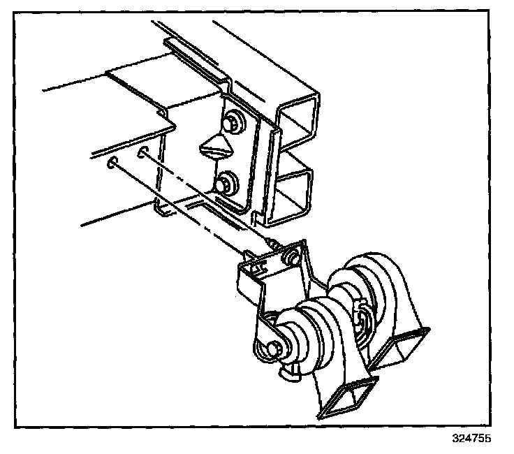 1. Position the horn to the front frame rail extension; insert the horn anti-rotation tab into the slot on the frame rail extension.
