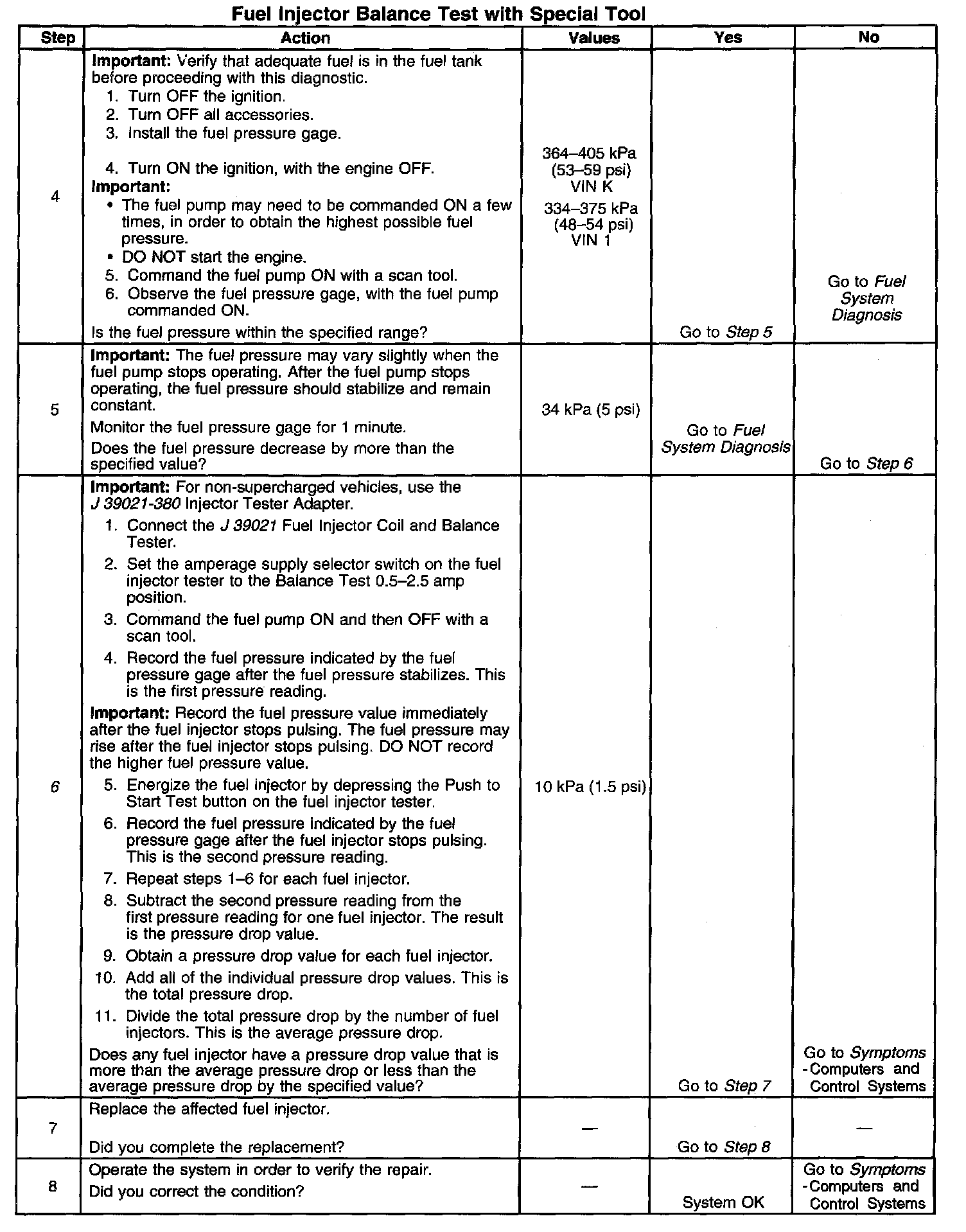 Fuel Injector Balance Test Example (Typical):