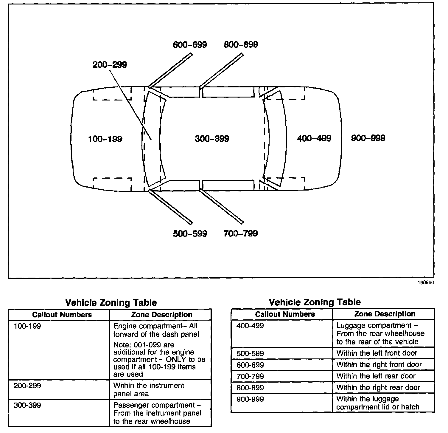 All grounds, in-line connectors, pass-through grommets, and splices have identifying numbers that correspond to where they are located in the vehicle.