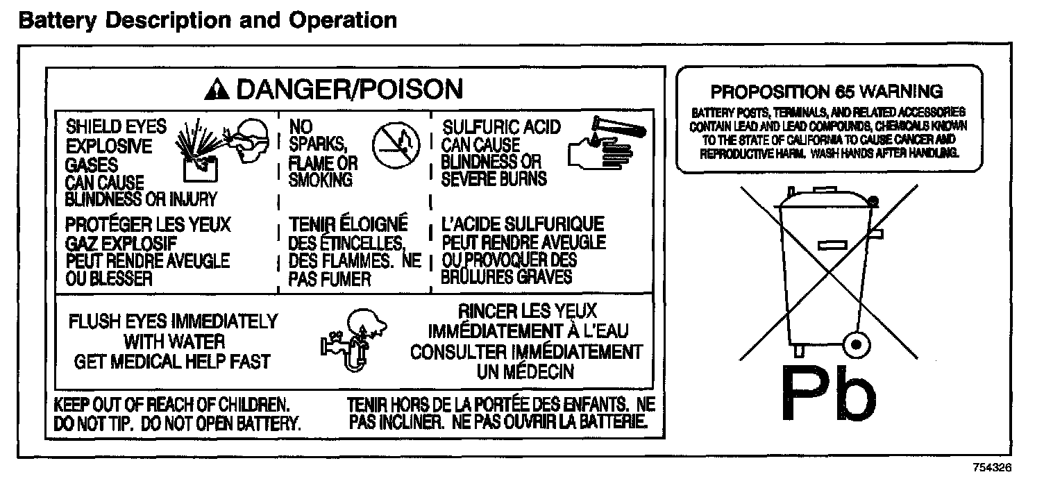 - Do not allow the battery electrolyte to contact the eyes or the skin. Flush immediately and thoroughly any contacted areas with water and get medical help.