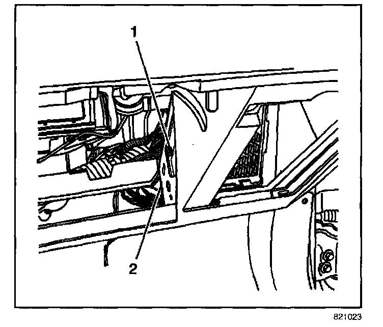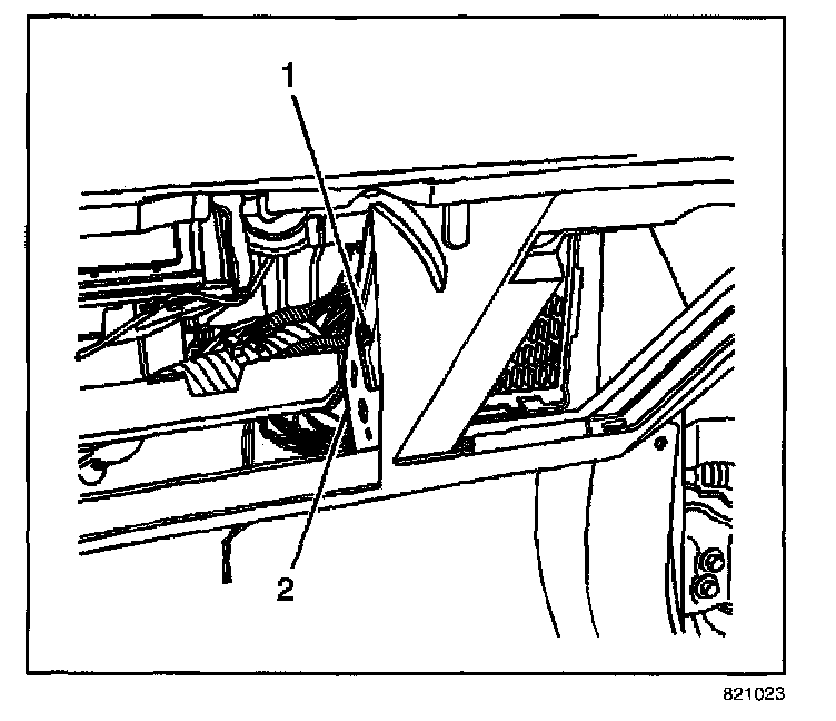 4. Connect the wiring harness retainer (1) to the I/P trim pad (2).