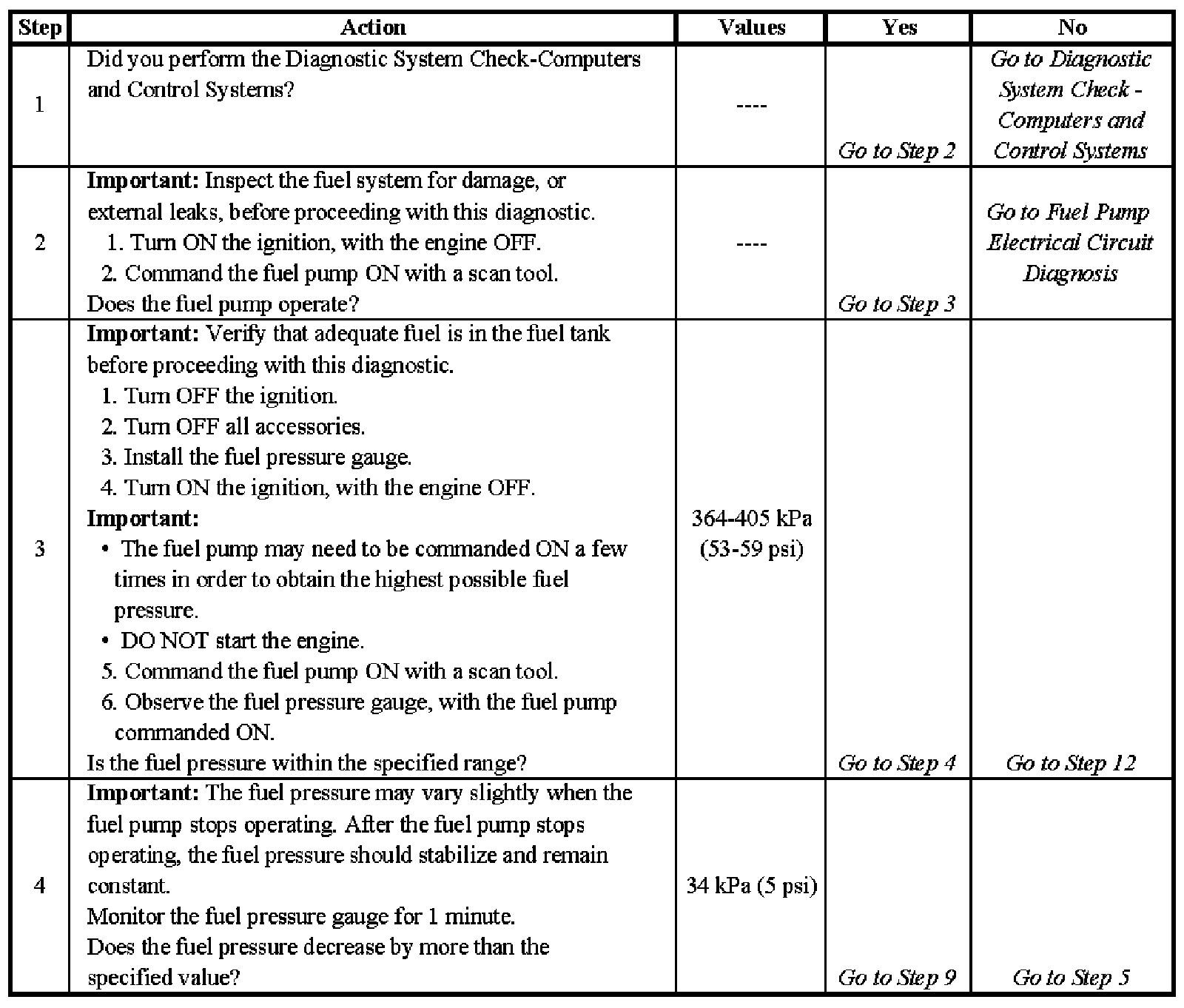 4. This step tests for an internal fuel leak. If the fuel pressure drops during this test, then an internal loss of pressure is indicated.