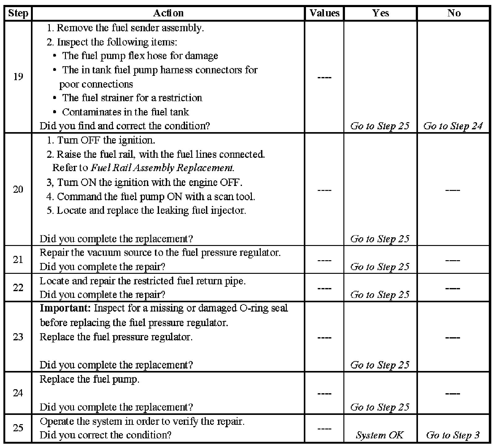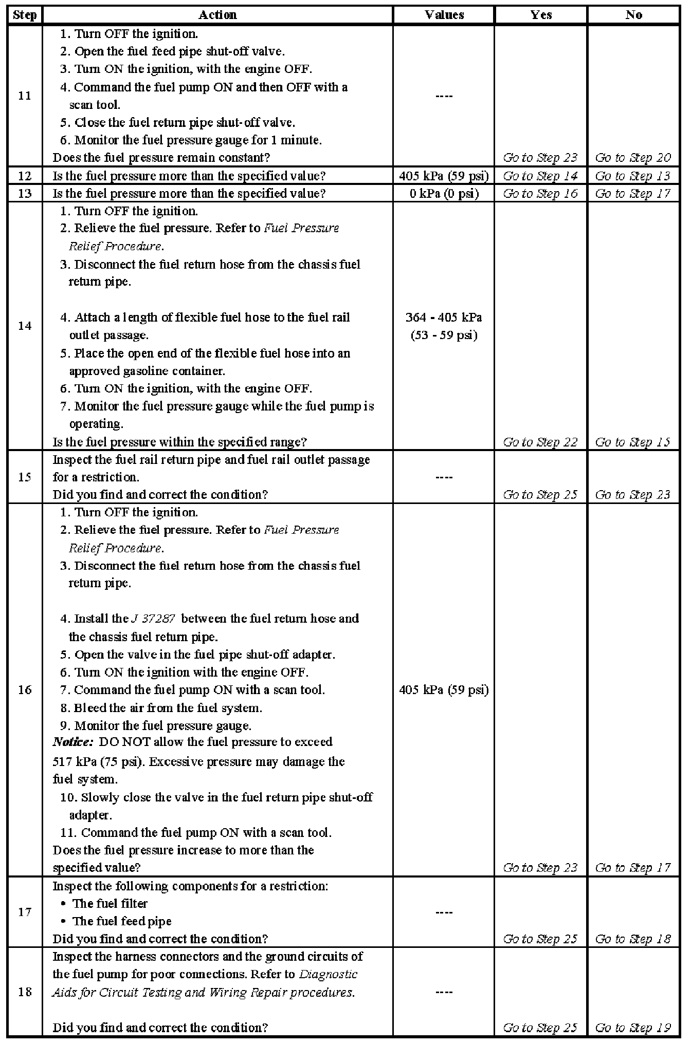 18. This step verifies that a circuit condition is not the cause of a fuel pressure concern. Inspect all fuel pump electrical circuits thoroughly.