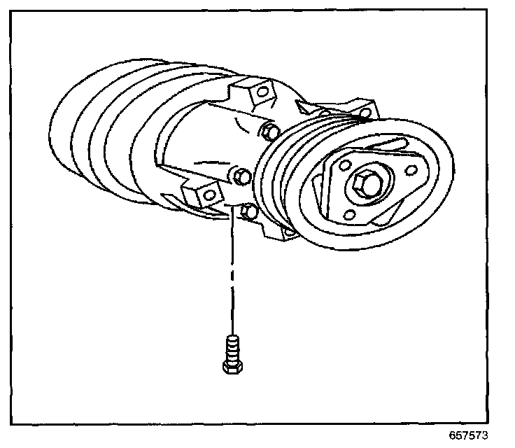 7. Install the bolt holding the compressor hose assembly to the compressor.