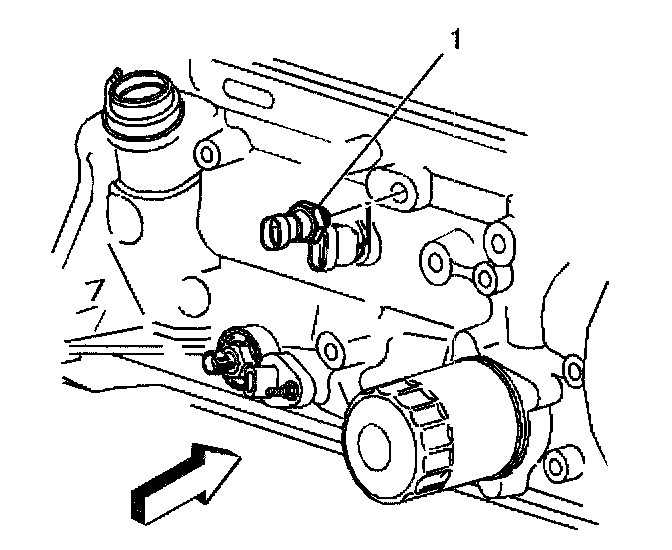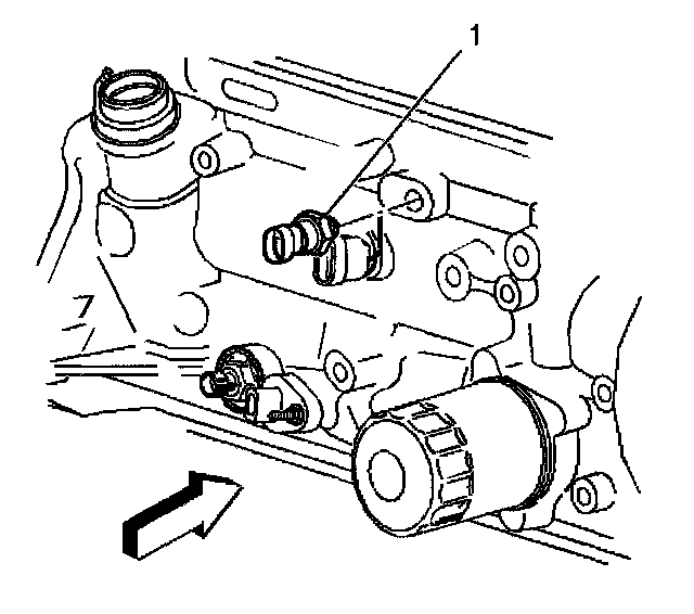 3. Remove the engine oil pressure sensor (1) using J 35749.