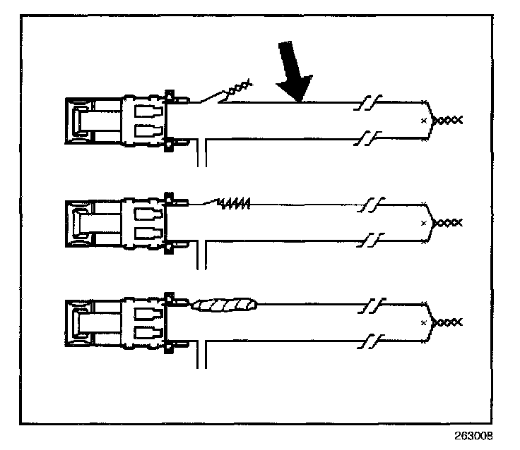 33. Place a power source, 12 V minimum A minimum, such as a vehicle battery, near the shorted end of the harnesses.