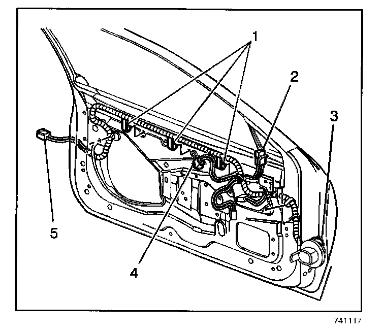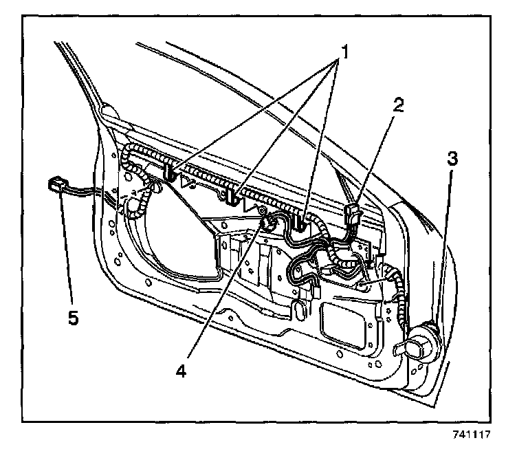 5. Connect the front door electrical harness (3).