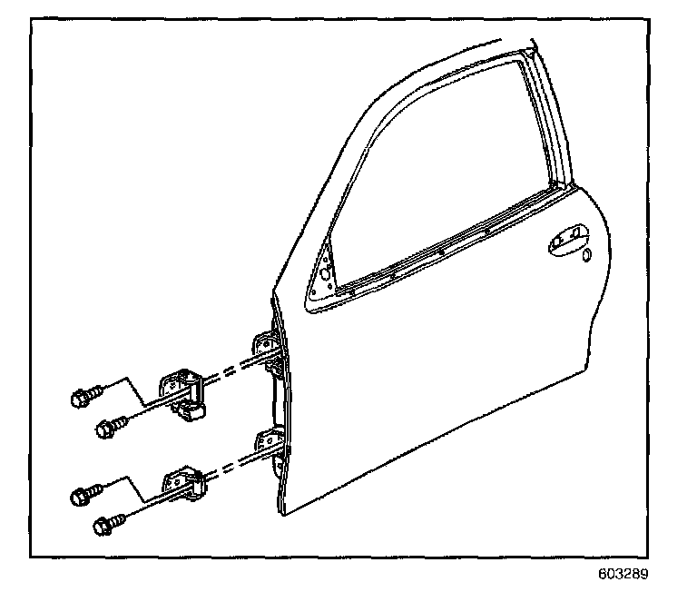 3. With an assistant, install the door hinge to front door bolts.