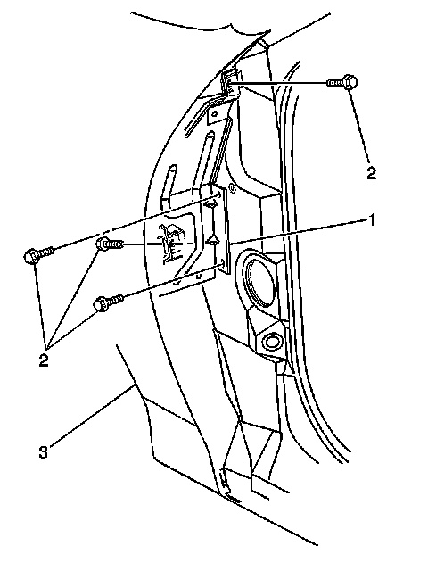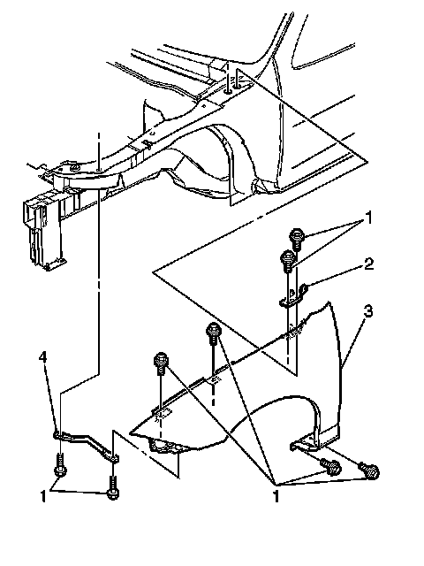 6. Install the fender center bracket bolts (2) to the fender (3).