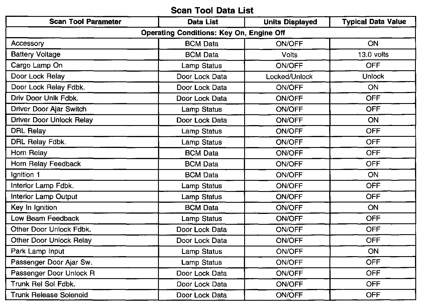 Scan Tool Data List: