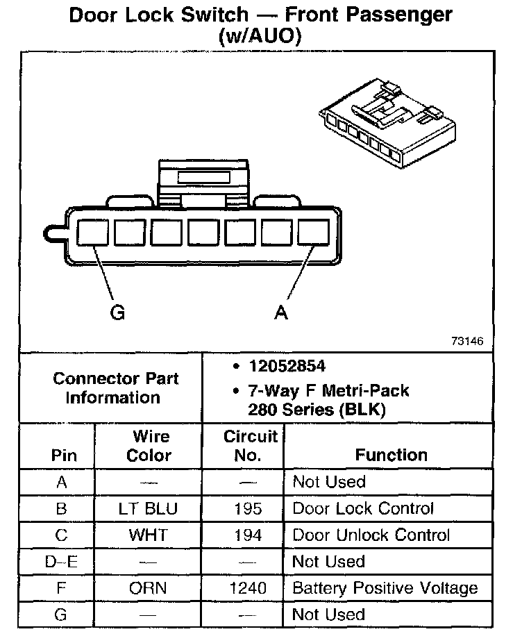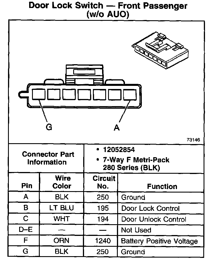 Door Lock Switch - Front Passenger (W/O AU0):