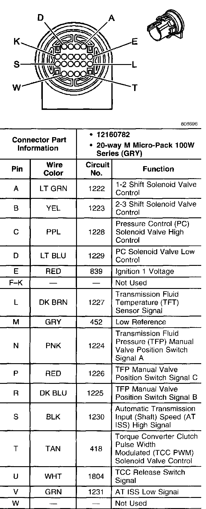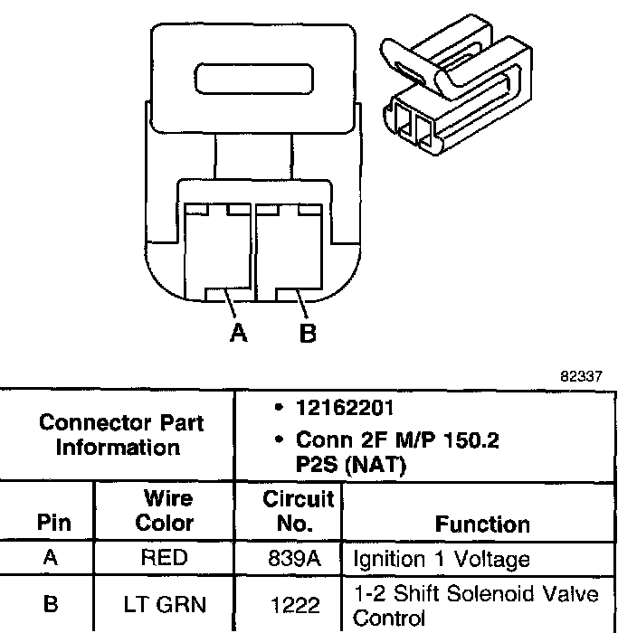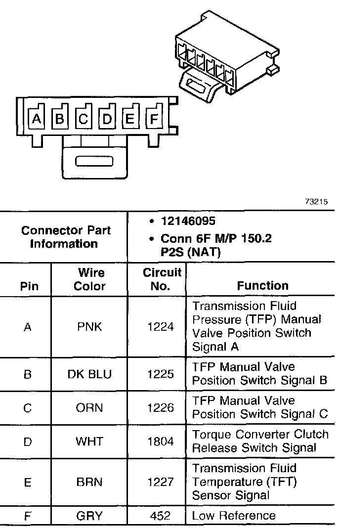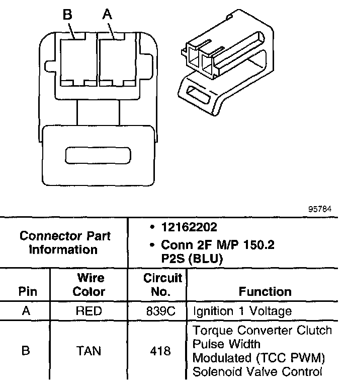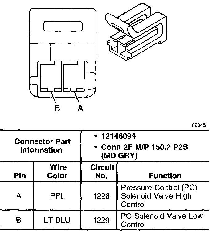 Torque Converter Clutch Pulse Width Modulated (TCC PWM) Solenoid Valve Connector, Wiring Harness Side