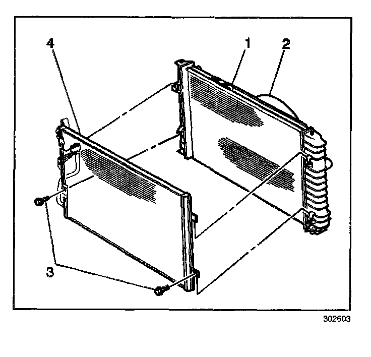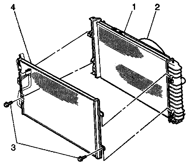 8. Remove the condenser to radiator bolts (3).