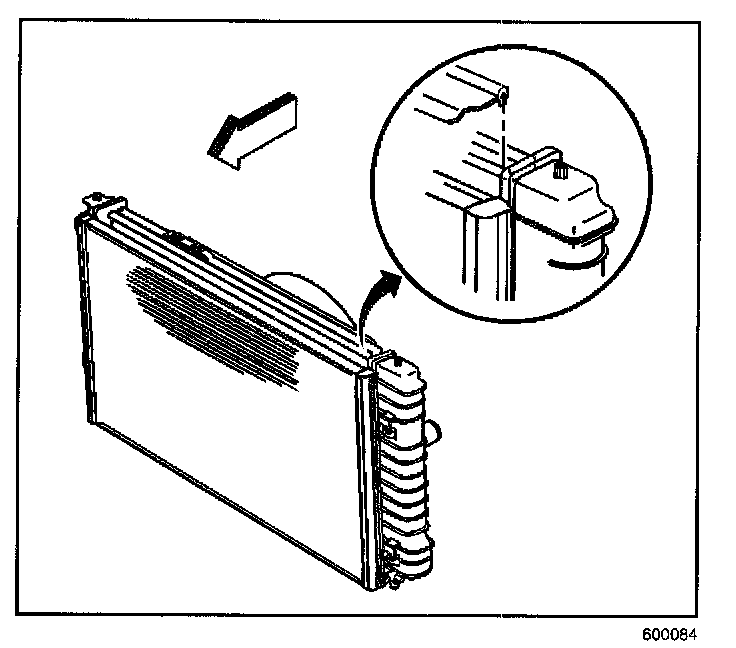 9. Lift the condenser tabs from the clips on the radiator.
