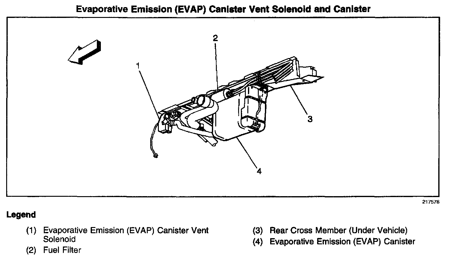 The fuel filter is located on the cross member just forward of the fuel tank.