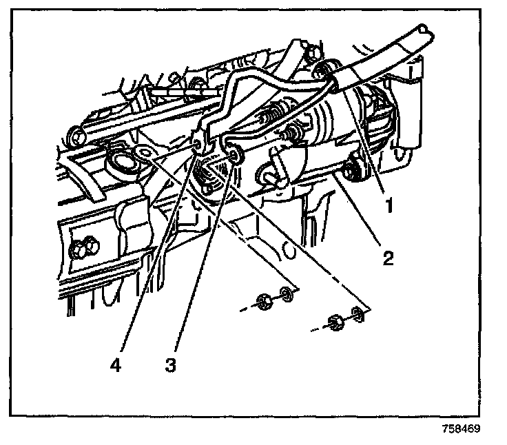 3. Disconnect the electrical connectors (3, 4) from the starter.