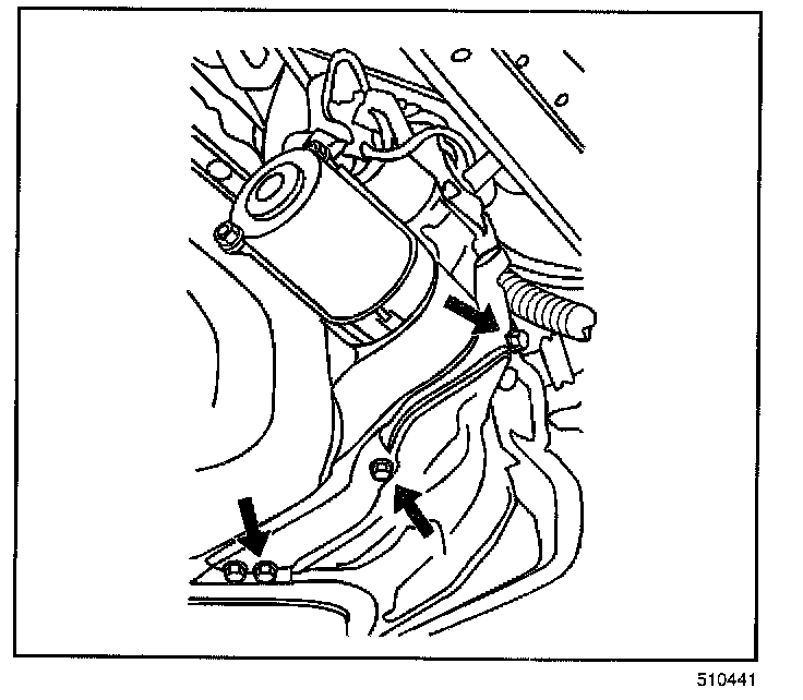 6. Remove the starter bolts and starter.