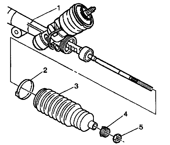 2. Remove the nut (5) from the inner tie rod assembly.
