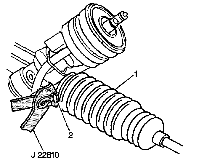 5. Install the boot clamp on the boot (1) using tool J22610 (2).