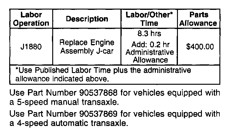 Engine Exchange Program for 2.2 L ECOTEC Engine