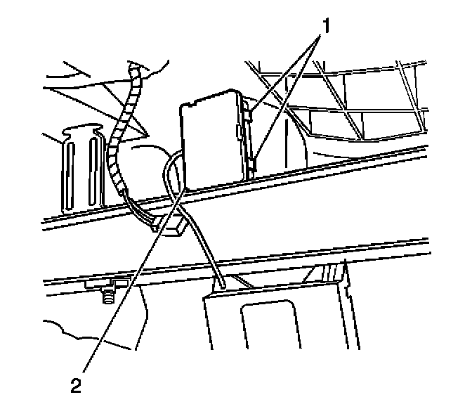 1. Snap the remote control door lock receiver module (2) into the slots in the rear compartment.