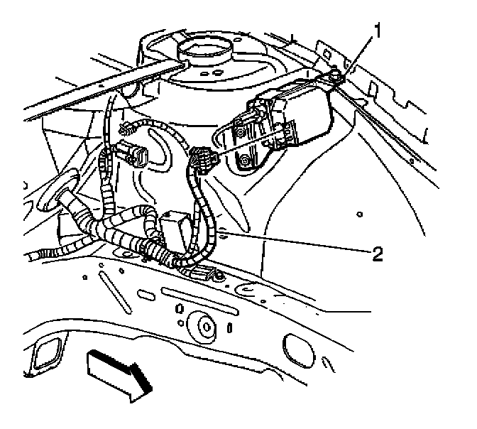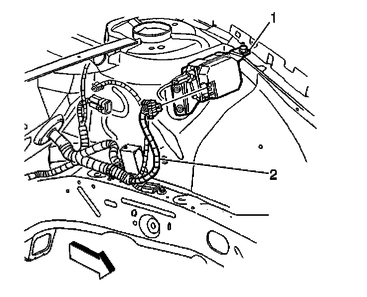 4. Remove the cruise control module and bracket assembly (2) from the vehicle.