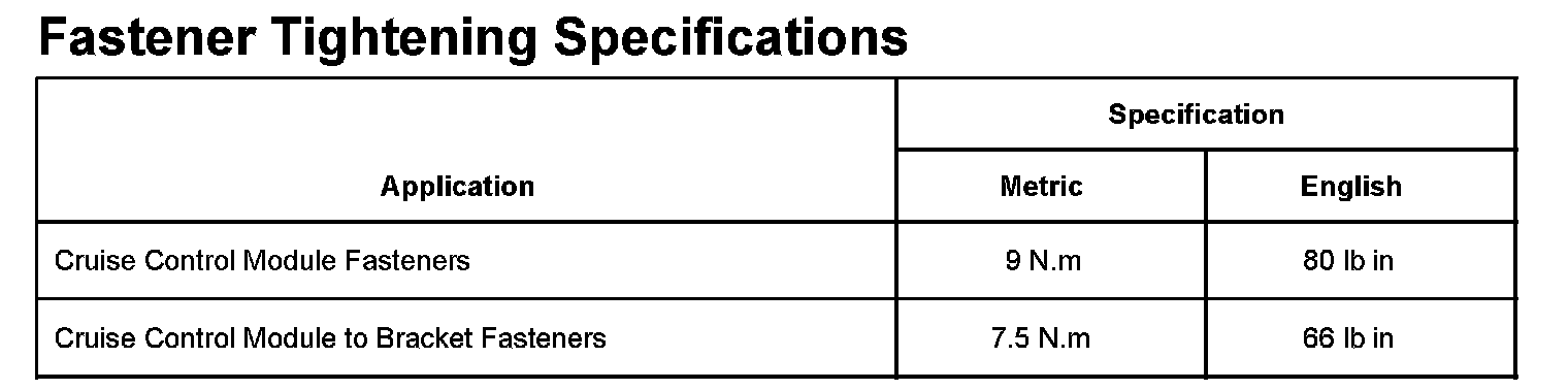 Cruise Control: Specifications