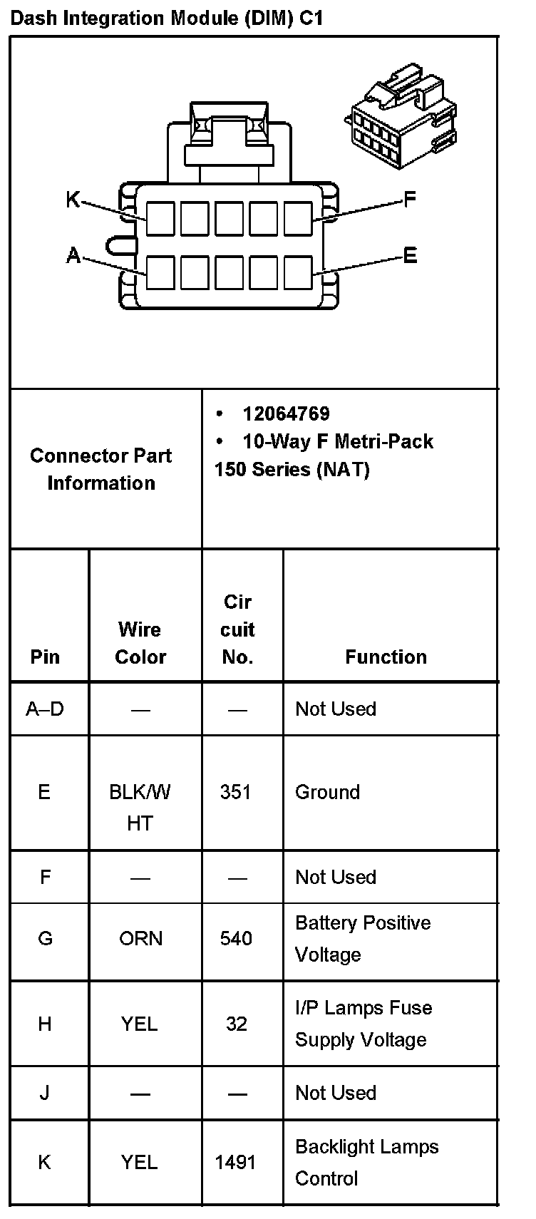 Dash Integration Module (DIM) C1: