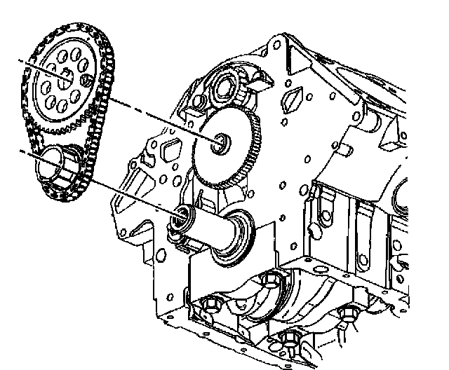 3. Assemble the timing chain on the sprockets. Ensure that the timing marks are in the closest together position.