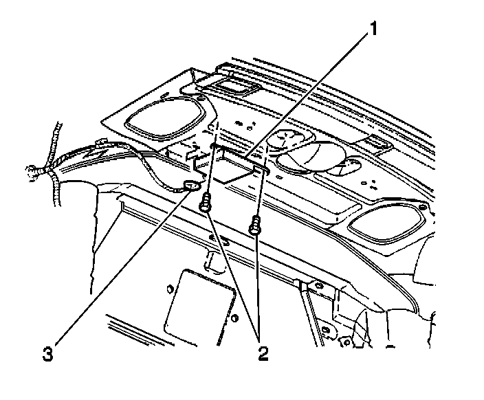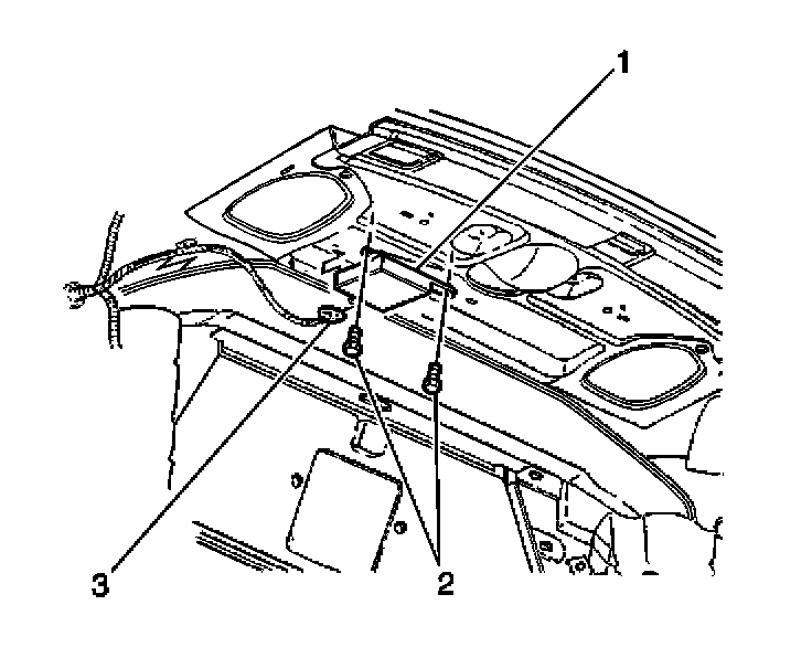 2. Remove the push-in fasteners (2) retaining the compass module to the rear shelf in the rear compartment.