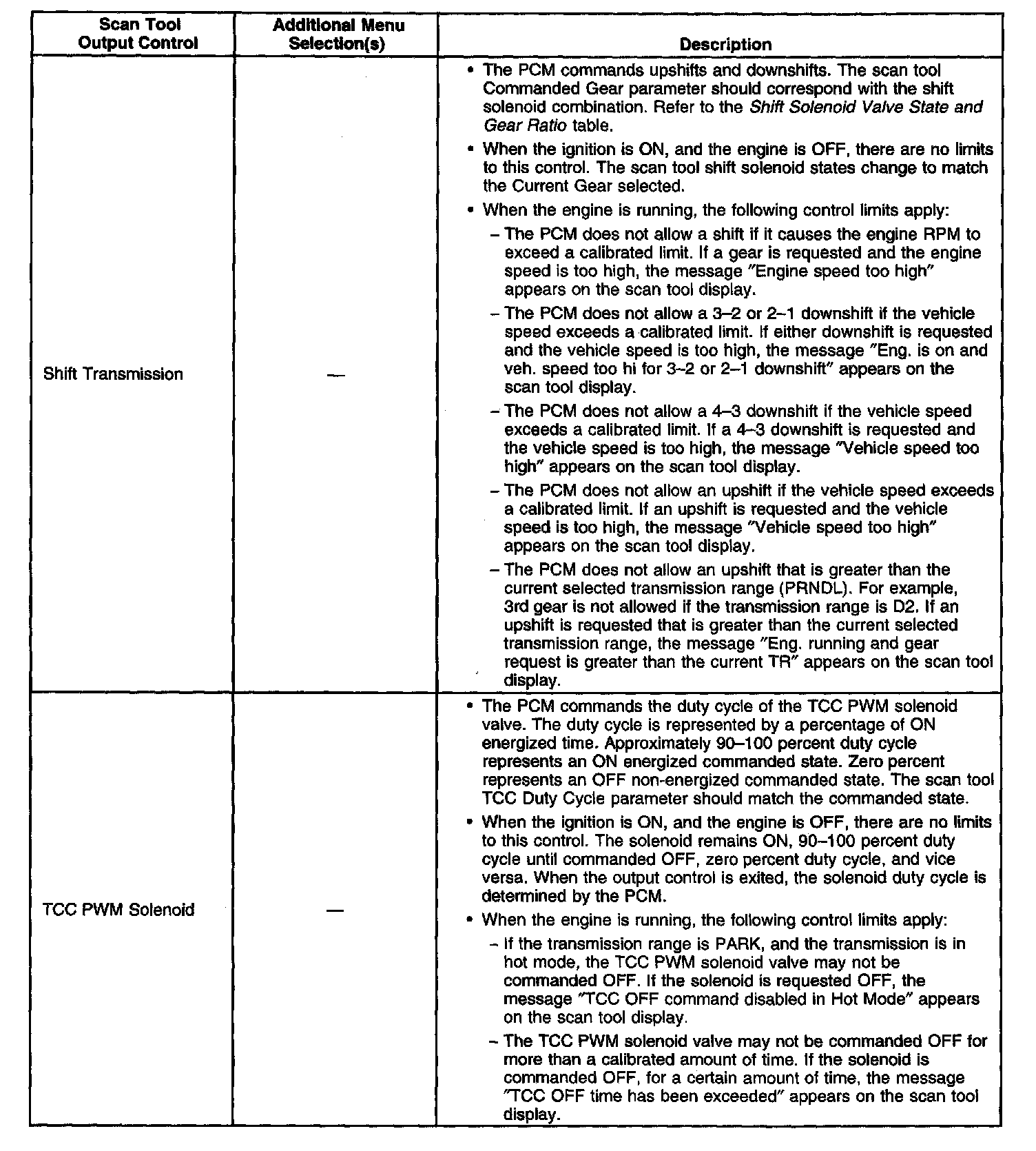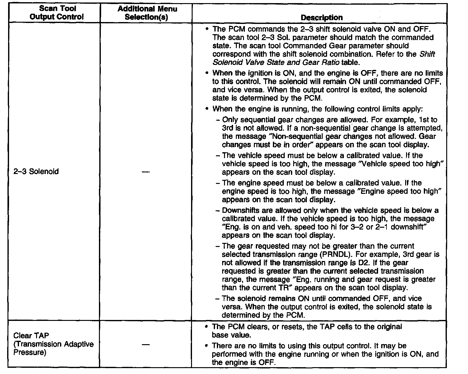 Scan Tool Output Controls