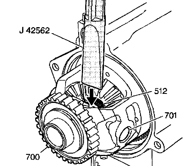 3. Place the J 42562 between the end of the output shaft and the differential pinion shaft.