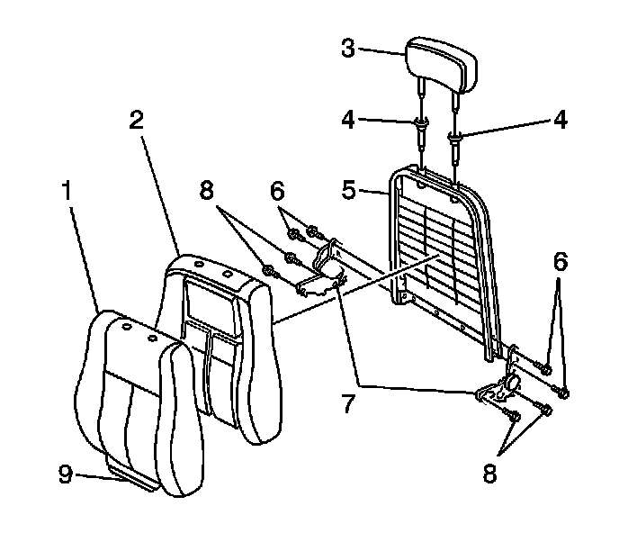 2. Remove the seat back pad (2) from the seat back frame (5).