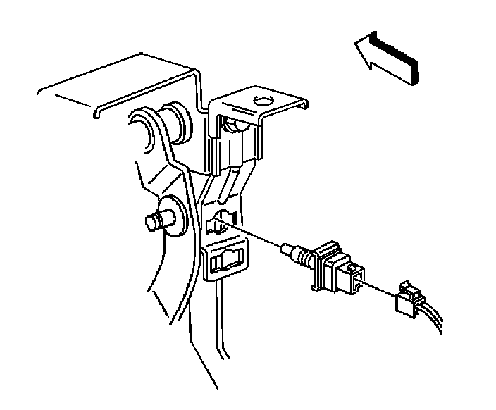 1. Depress the brake pedal and insert the cruise control release switch into the bracket until the retainer is fully seated.