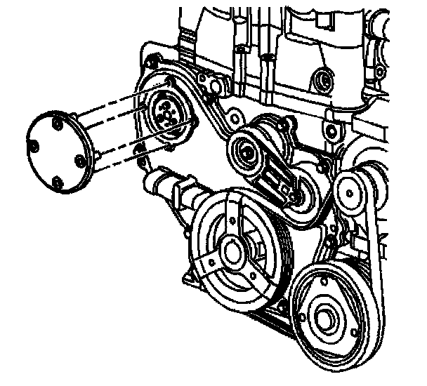 6. Install 2 of the bolts that secure the water pump sprocket to the water pump.