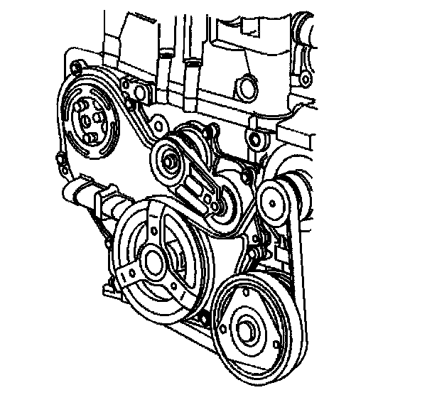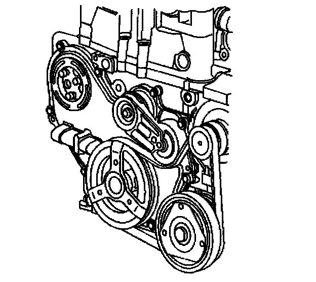 7. Install J 43651 to the water pump sprocket.