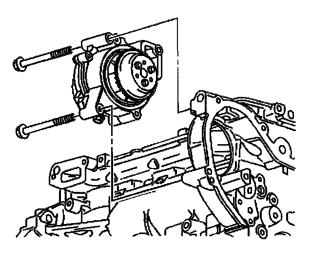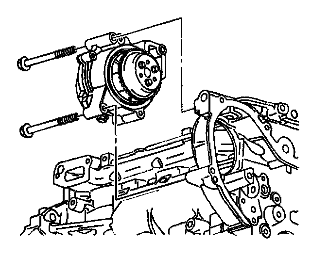 13. Remove the 2 bolts that secure the water pump to the engine block.