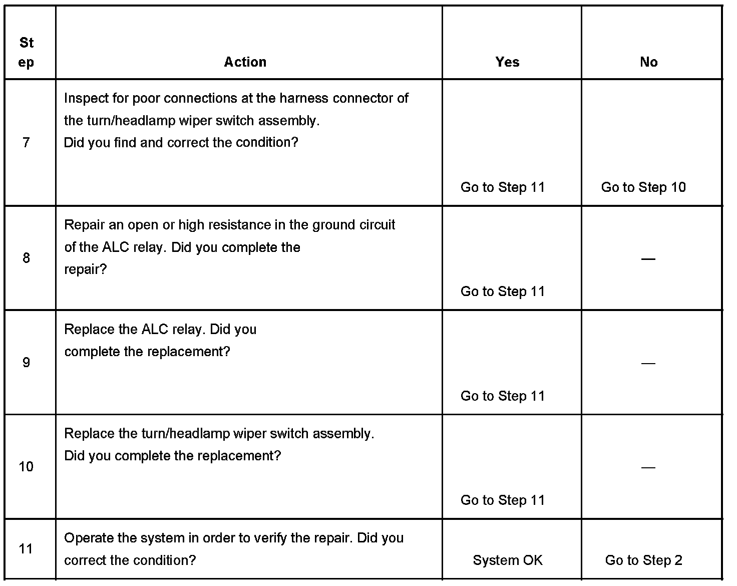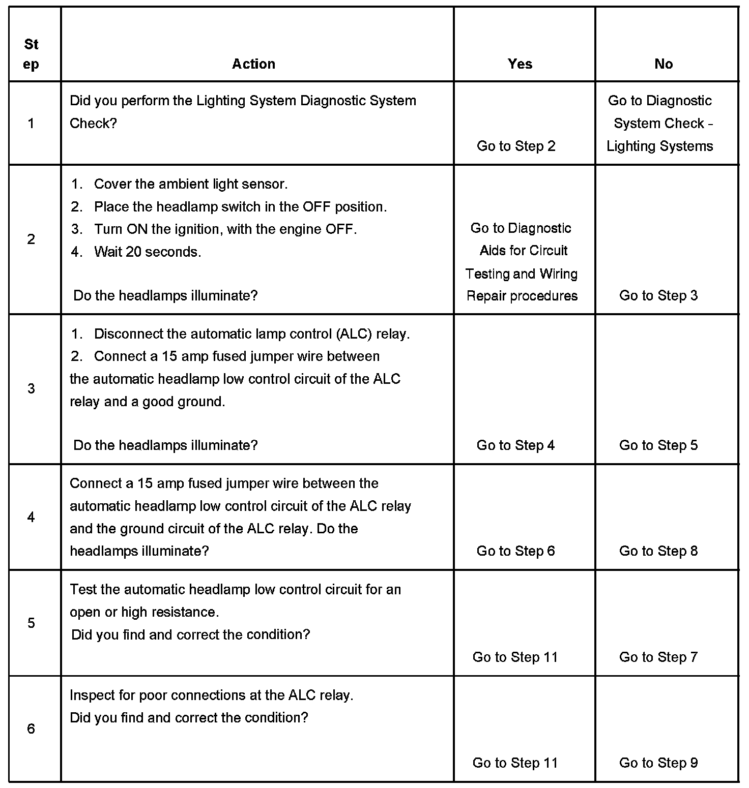 Automatic Lamp Control Inoperative