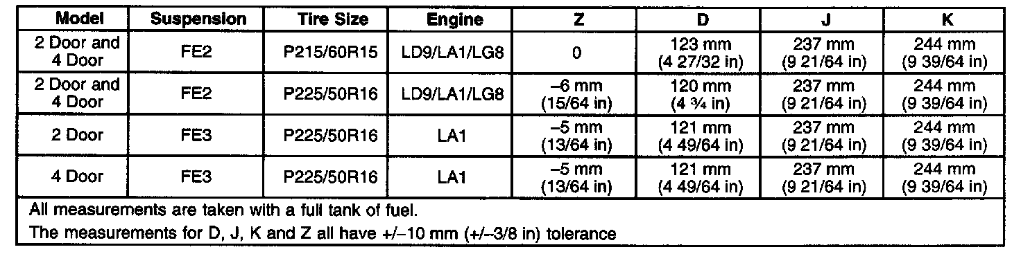 Ride/Trim Height Specifications