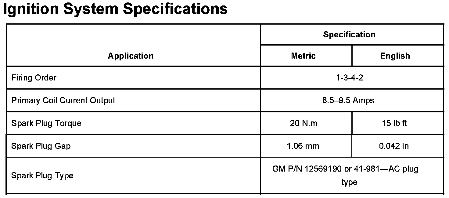 Ignition System Specifications: