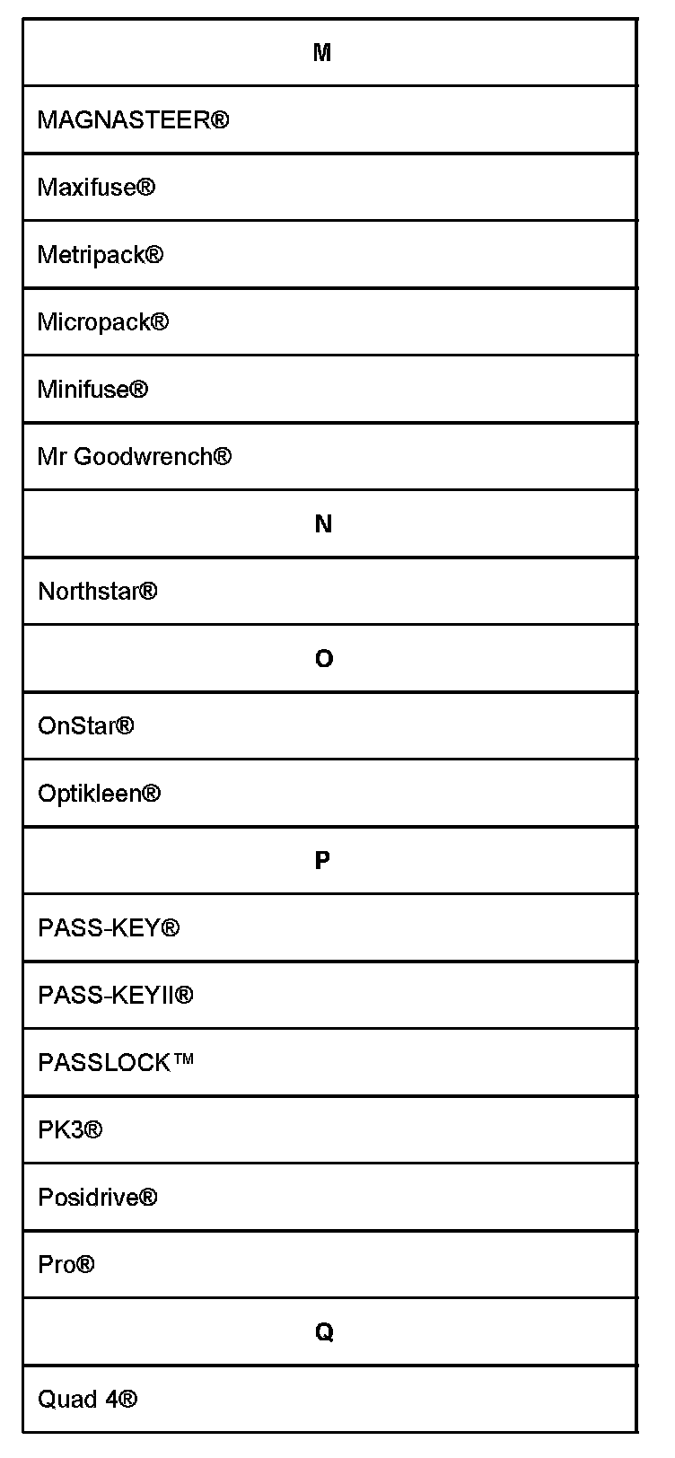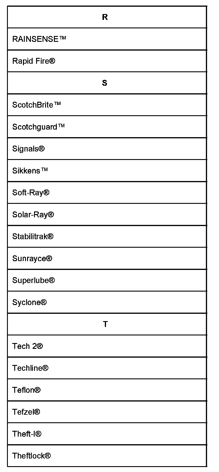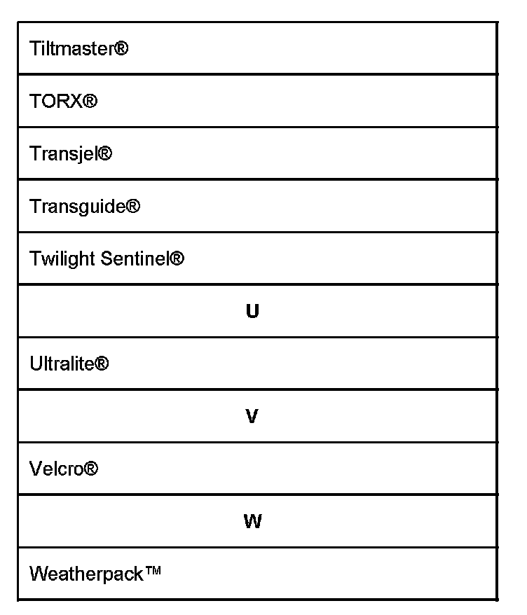 Listed are Registered Trademarks (R) or Non-Registered Trademarks (TM).