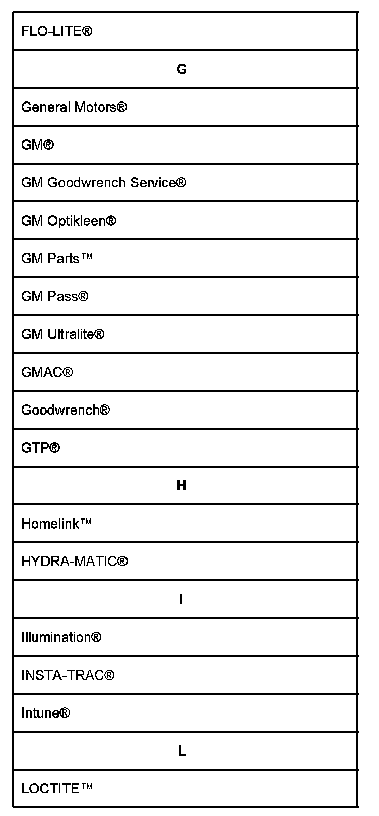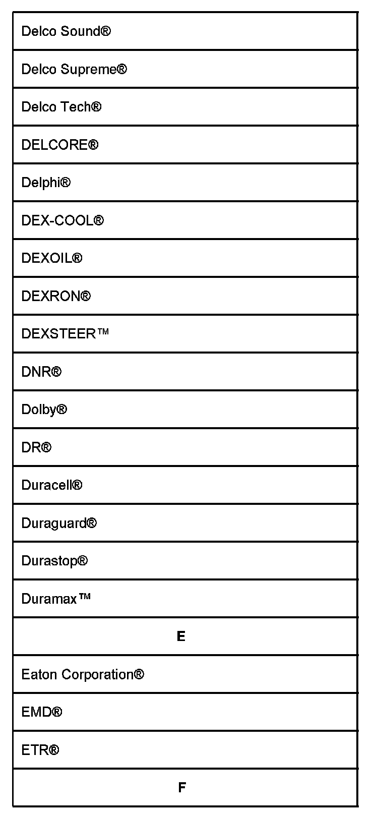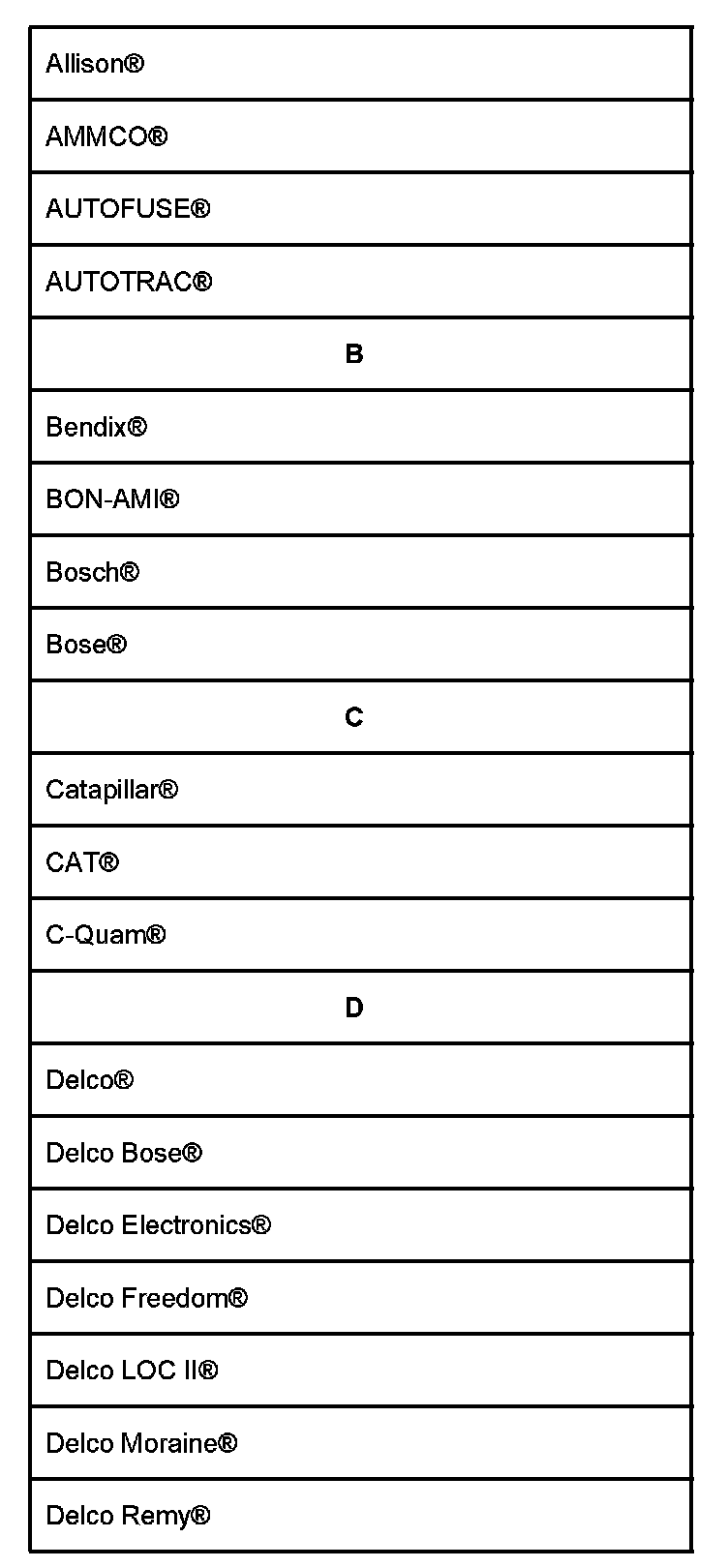 Listed are Registered Trademarks (R) or Non-Registered Trademarks (TM).