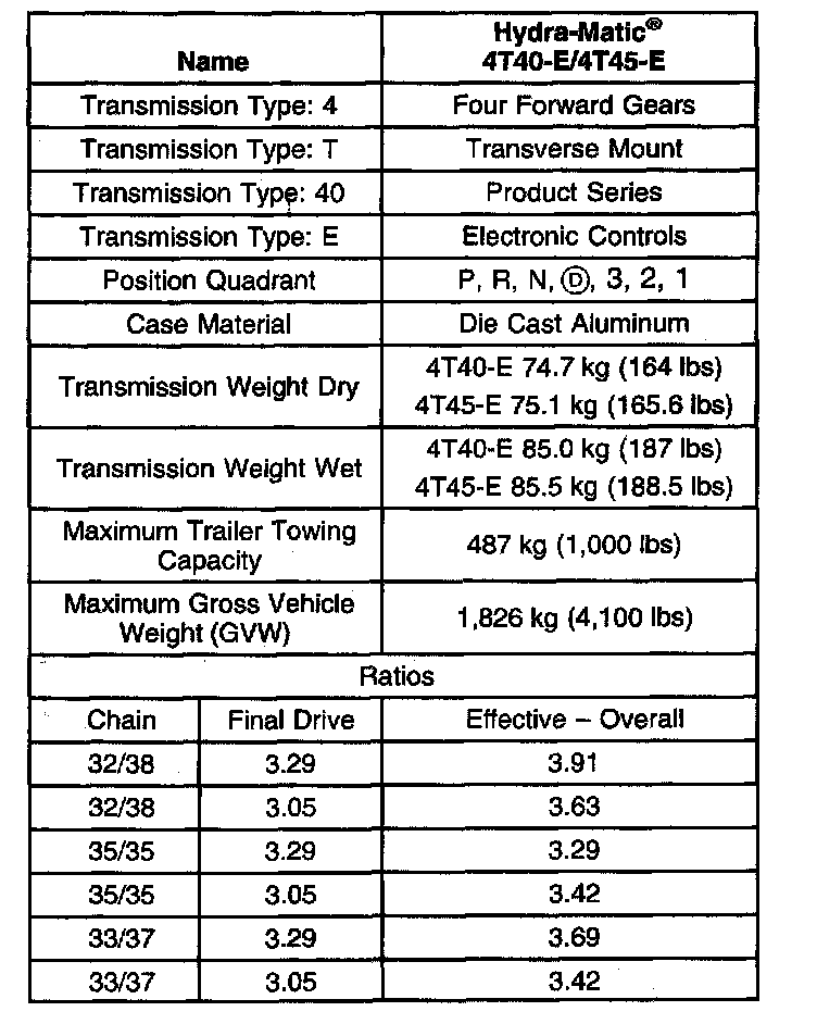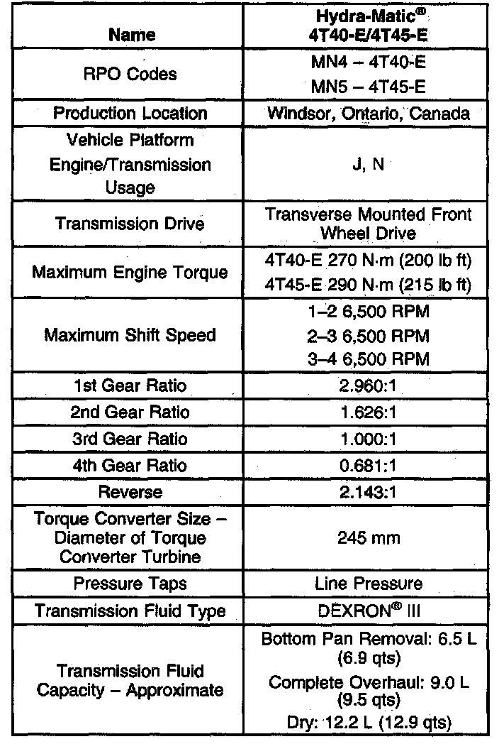 Transmission General Specifications