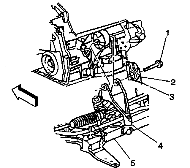 12. Loosen the front bolts (5) on the crossmember (4).