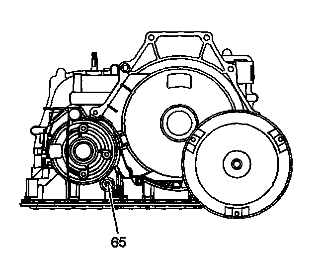 The oil level control plug (65) is located on the torque converter side of the transmission.